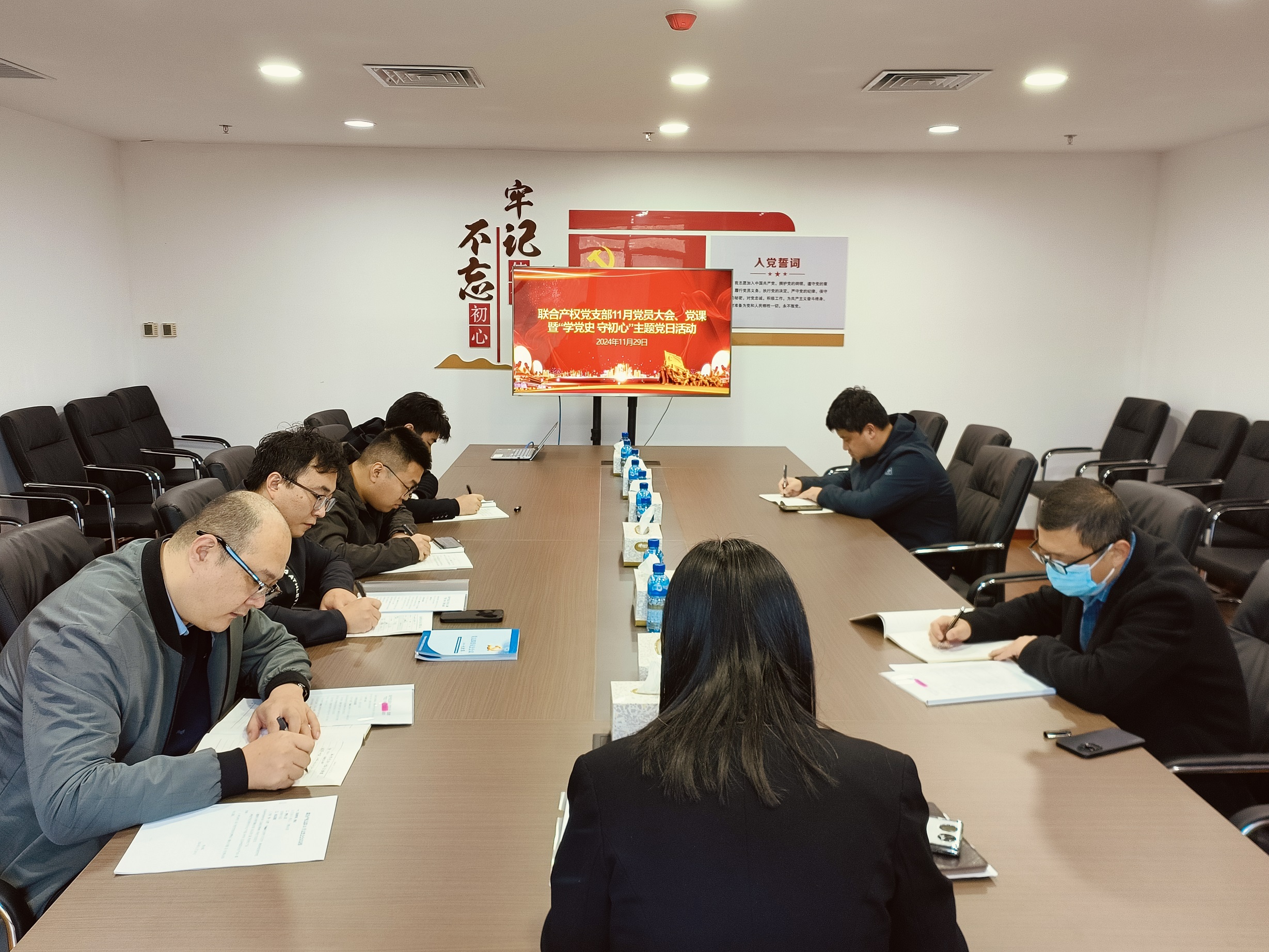 1129日聯(lián)合產(chǎn)權(quán)黨支部召開11月黨員大會、黨課暨學(xué)黨史 守初心”主題黨日活動,黨支部副書記主持,支部黨員參加會議。