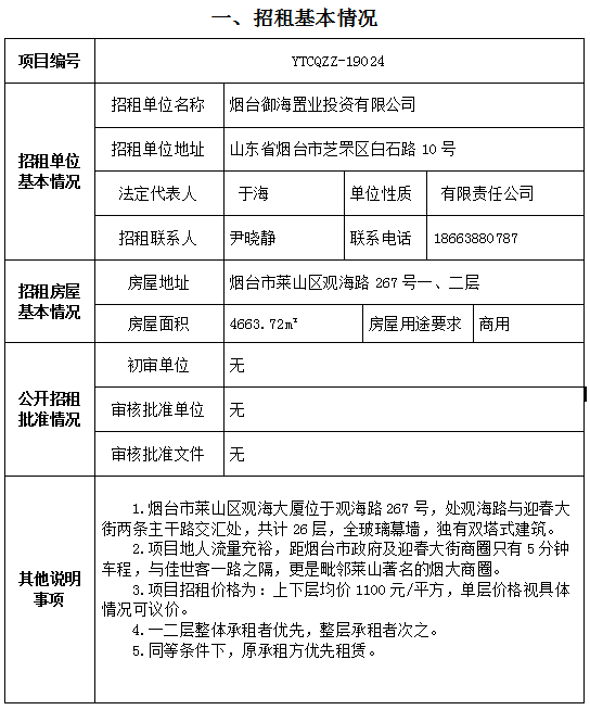 萊山區(qū)觀(guān)海大廈一二層招租項(xiàng)目
